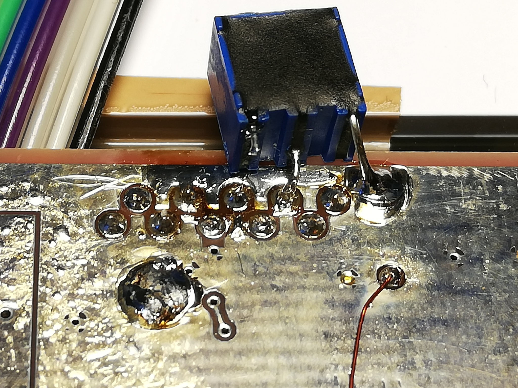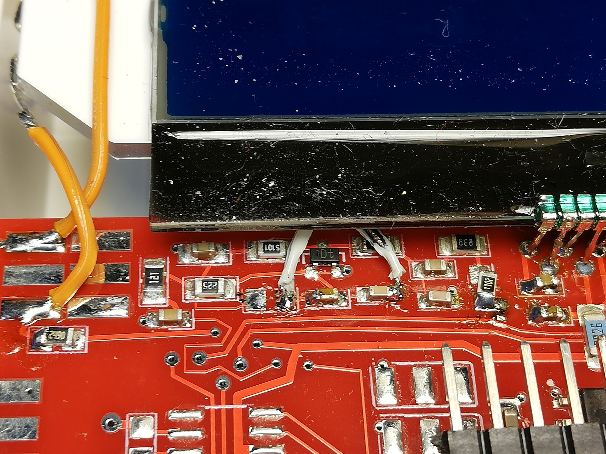 Mein Display war schlecht ablesbar da der Kontrast zu stark war. Ich habe ein 1K Poti vom 3, Pin von rechts auf Masse gelegt.